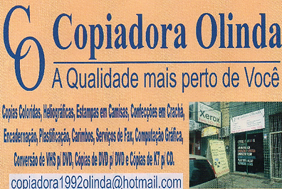 A Qualidade Mais Perto de Você ! Cópias Coloridas, Heliográficas, Estampas em Camisas, Confecções em Crachá, Encadernação, Plastificação, Carimbos, Serviços de Fax, Computação Gráfica, Conversão de VHS p/ DVD, Cópias de DVD p/ DVD e Cópias de K7 p/ CD, Plotagem (Autocad)